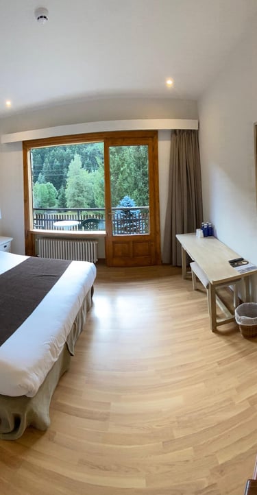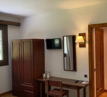 Una habitació còmoda i lluminosa, ideal per a 2 o 3 persones que busquen tranquil·litat i confort. Amb una decoració càlida i funcional, aquesta estada ofereix vistes espectaculars a les muntanyes, creant un ambient relaxant i natural.