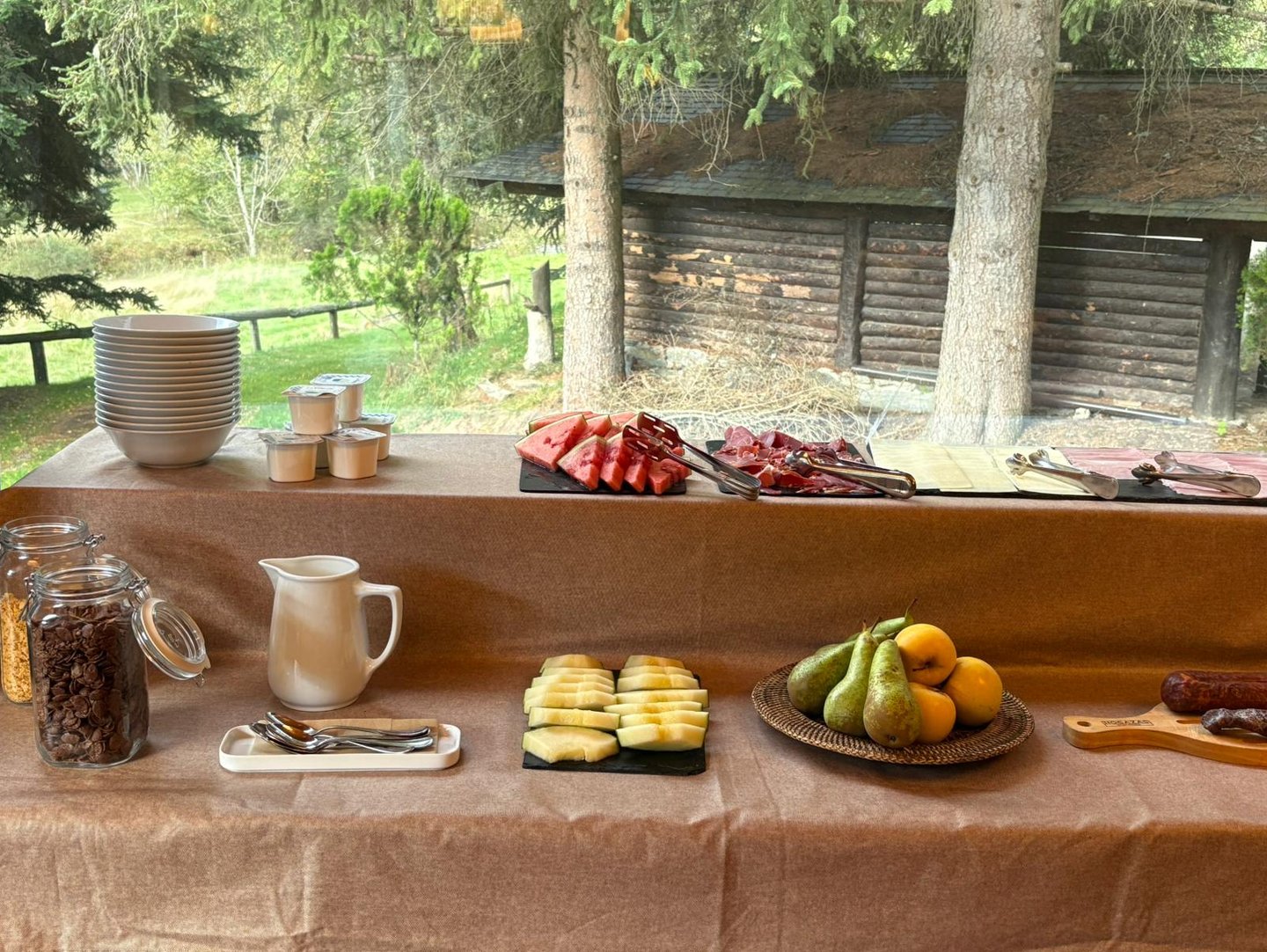 Trobaràs des de pans acabats de fer, embotits tradicionals i formatges de la zona, fins a opcions calentes com ous remenats i becon. També oferim fruita de temporada, cereals, lactis i rebosteria artesanal per als qui prefereixen un toc més dolç al matí.